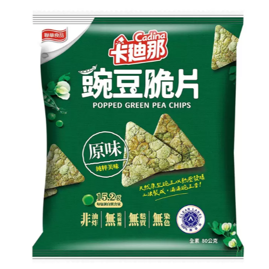 100%整顆豌豆熱壓發爆製成,滿滿豌豆香