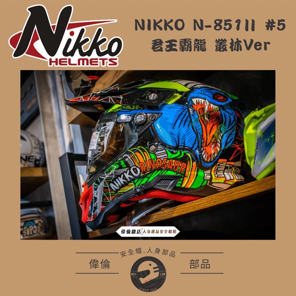 【NIKKO】N-851Ⅱ #5 君王霸龍 叢林Ver 越野帽<偉倫安全帽人身部品館>夜光效果 可拆洗內襯 內墨鏡