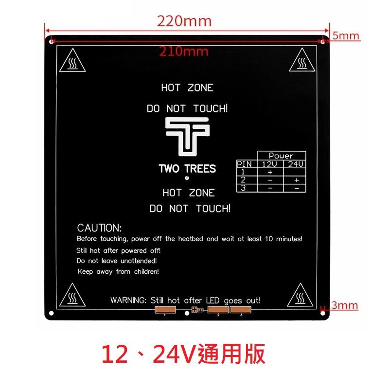 桌面級3D列印機的加熱床MK3熱床.MK3採用的是鋁基板工藝,即在鋁板表面附著熱電阻絲,其導熱係數,耐壓值,熱阻值等性能顯著
