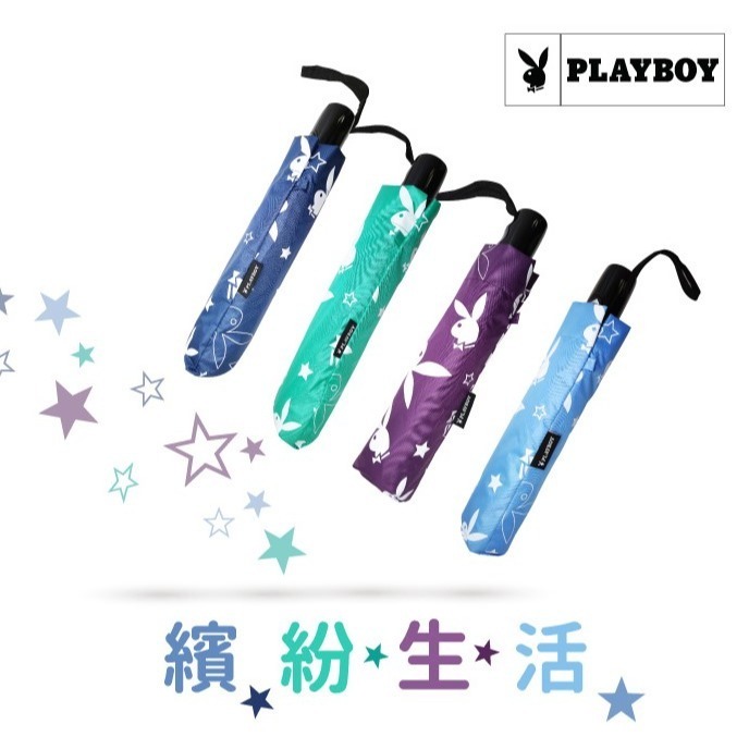 【PLAYBOY】星光閃爍款 23吋 全遮黑膠防風自動傘 摺疊傘 遮陽傘