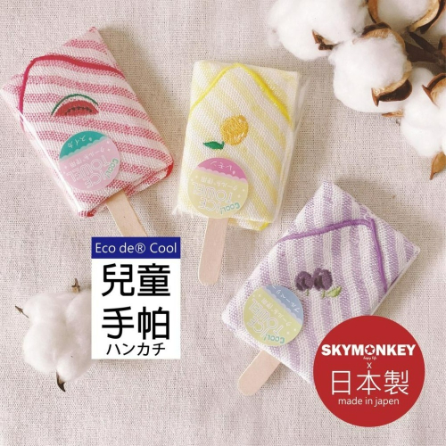 Sky Monkey☆日本製 兒童涼感手帕 冰棒造型 JOGAN 紗布手巾 小方巾 幼稚園手帕 紗布手帕 日本手帕