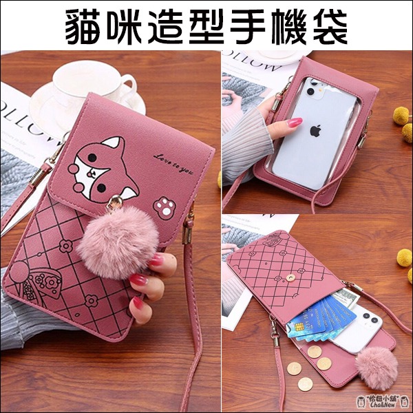 貓咪造型手機袋 手機包 隨身包 小物包 斜背包 肩背包 單肩包 斜挎包 透明膜觸控 背帶