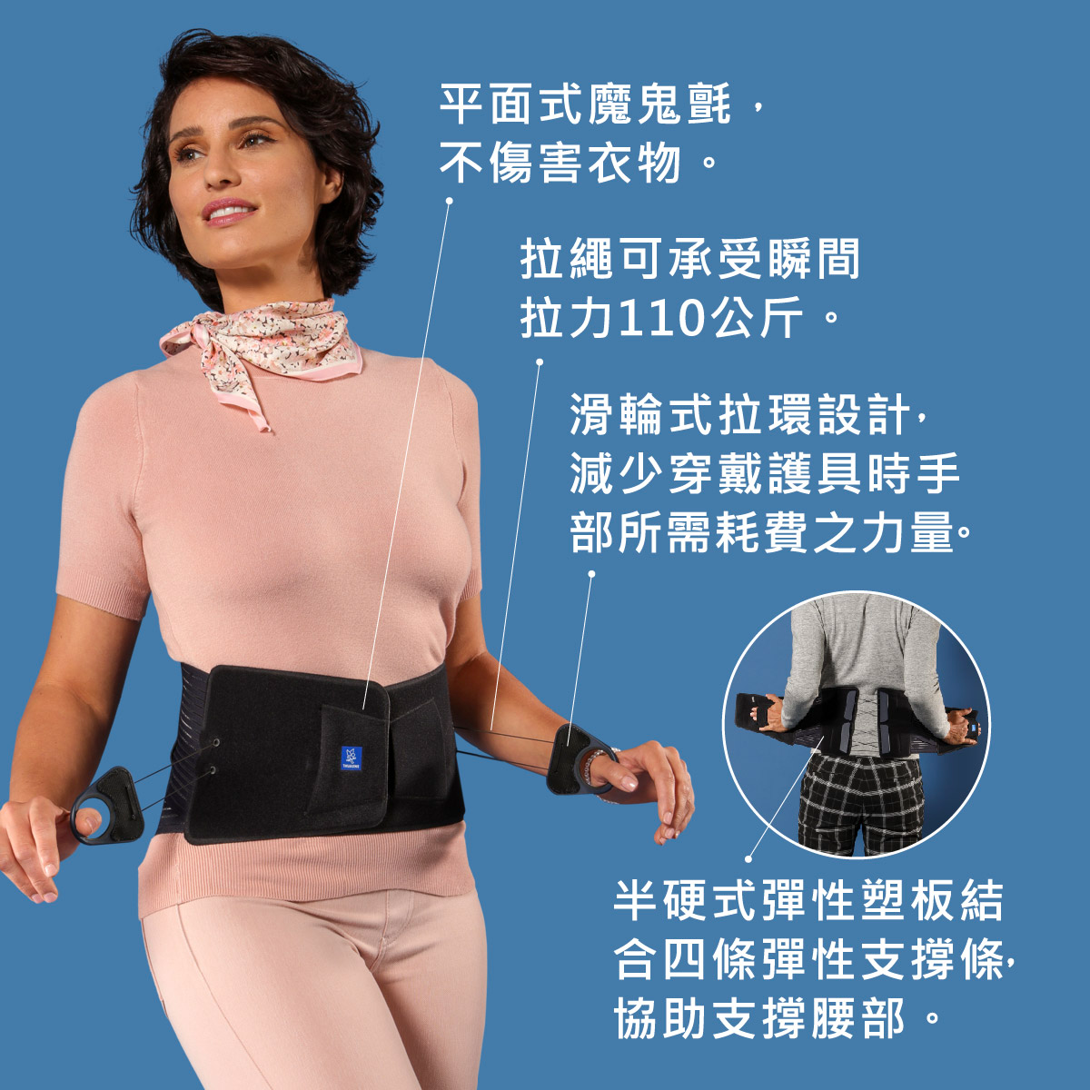 * 穿戴輔助手部套環 - 方便對準並黏貼魔鬼氈、廣闊腹內壓範圍更服貼