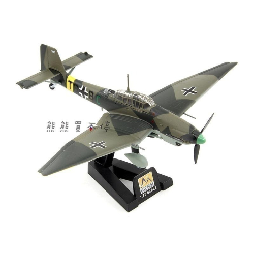 此台 二戰 德軍 Ju-87 斯圖卡 俯衝轟炸機 Ju87 戰鬥機 為小號手模型生產的成品模型 (#36385),螺旋槳可轉動,其餘皆不可動,產品含含支架。