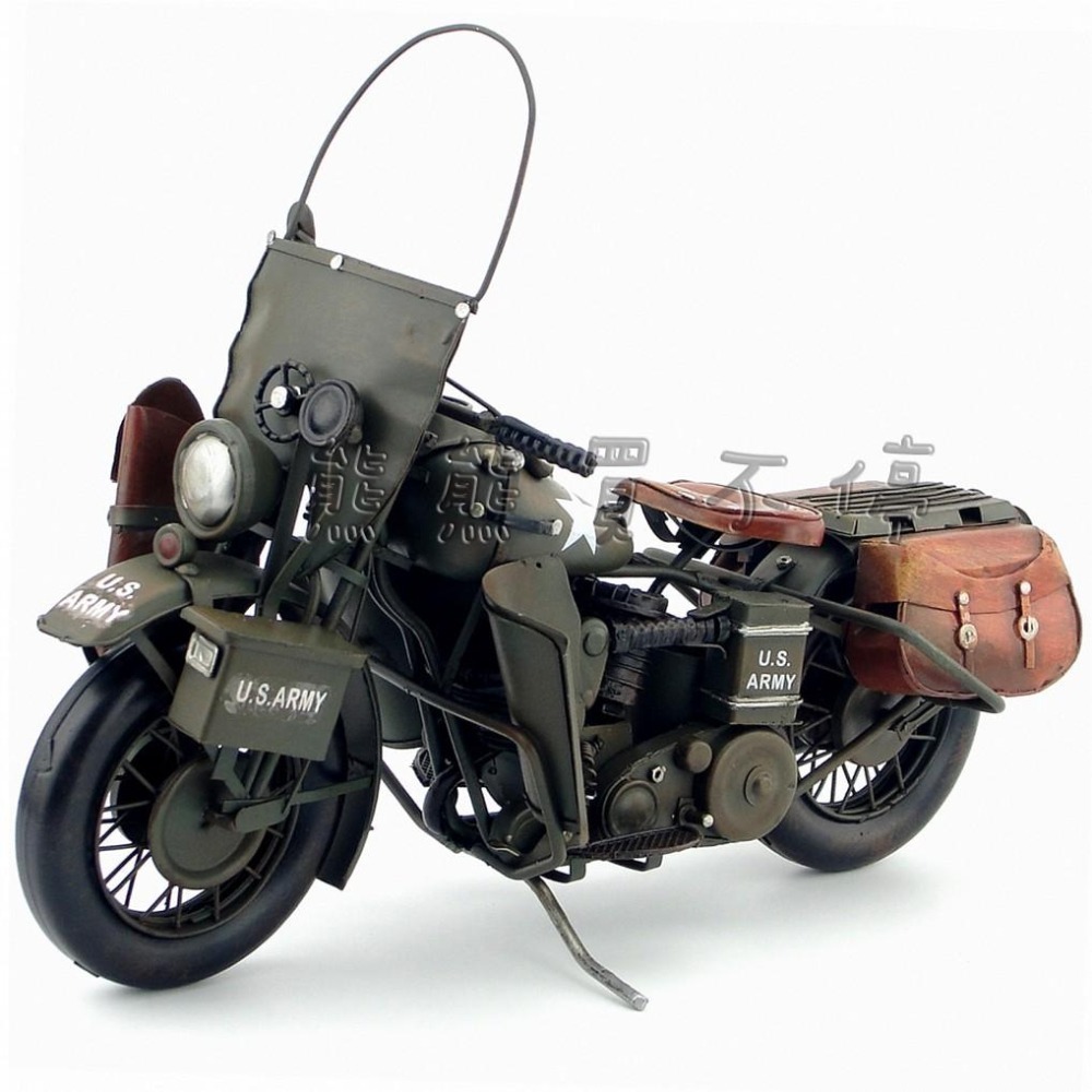 此台 復古鐵製摩托車 是 1942年 二戰美軍 美國 Harley-Davidson WLA 哈雷 軍用摩托車 模型 ,二戰開始前的30年代美各國軍隊大量裝備摩托車作為戰場機動靈活的戰鬥用車,當時哈雷摩托車使用非常廣泛,無論是騎兵作戰、傳令、運輸還是偵察。 車身上有美軍字樣標示,此款 摩托車模型因以鐵皮手工製作,每一款成品都會稍有不同,但是做工有質感 (超美的!!),拿起來也很有份量,商品寄送會以兩層紙箱包裹以防運送受損,寄出前會先提供商品檢查照片!