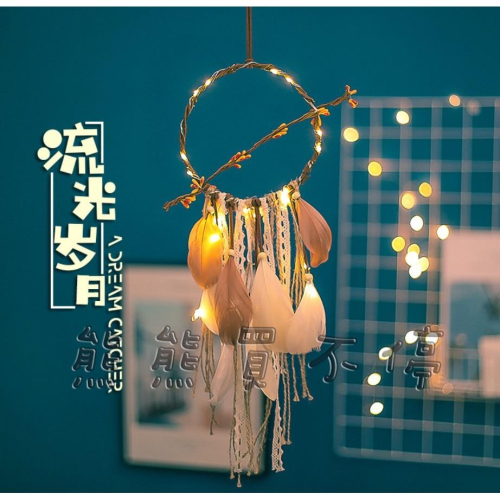 <現貨> ins風格 棕色捕夢網 蕾絲+羽毛 小夜燈 LED掛飾 婚禮小物 婚禮裝飾