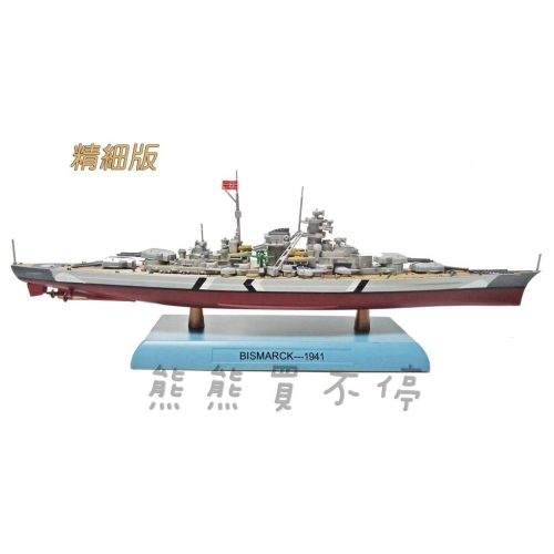 二戰德軍 俾斯麥號戰艦 Bismarck 是納粹德國戰爭海軍建造,以鐵血首相俾斯麥命名,是當時世界上噸位最高戰艦, 其戰績就是在六分鐘內擊沉 英國最強的戰列艦胡德號。 此商品配有帶名牌展示底座。