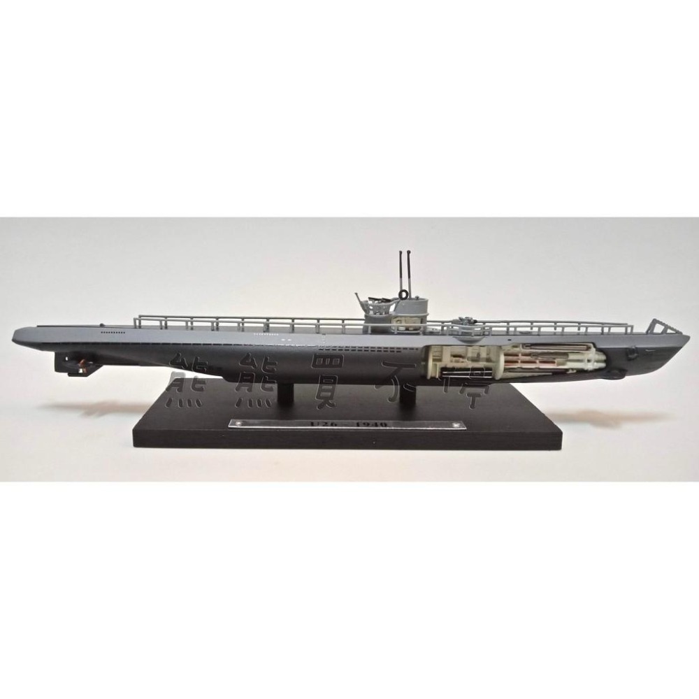 U型潛艇是特指在第一次世界大戰和第二次世界大戰時,德國使用的潛艇。此台二戰德國U型潛艦 U26 艦艇一側呈現魚雷艙等內部結構, 另一側則是完整艇體, 此商品配有帶名牌展示底座。