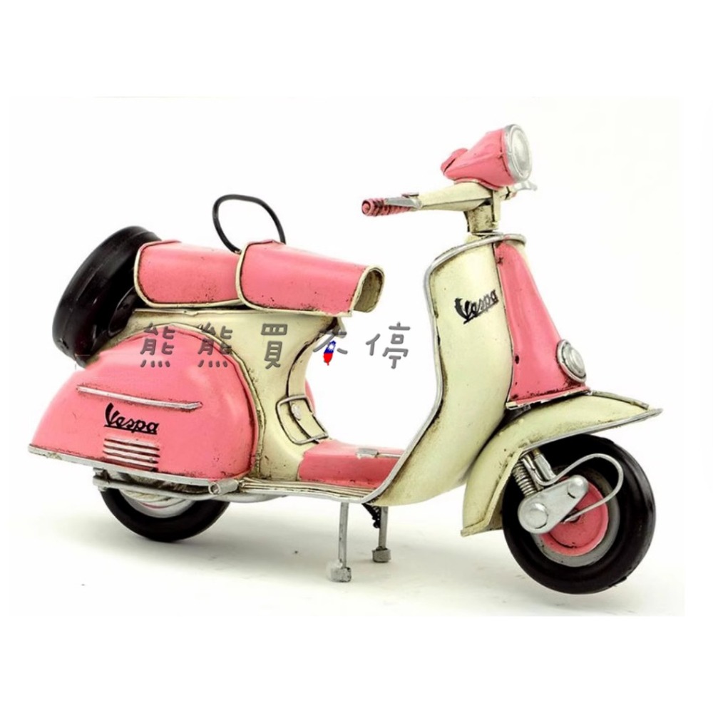 此台 復古鐵製腳踏摩托車 是仿照 偉士牌 Vespa 1965年 的款式 純手工製造,因以鐵皮手工製作,每一款成品都會稍有不同,但是做工有質感 (超美的!!),細節比一般市面看得到的產品更為精緻、豐富!! 拿起來也很有份量,商品寄送會以紙箱包裹以防運送受損,寄出前會先提供商品檢查照片!