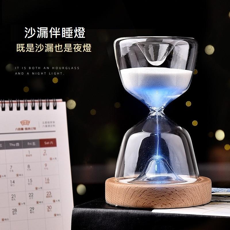 產品材質: 七彩發光實木底座(可充電), 沙漏計時器(無提袋) , 遙控器。