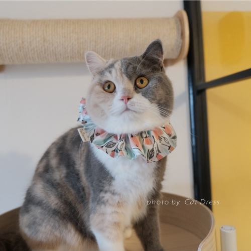 Cat Dress 貓手作 _春芽_貓鬆緊帶項圈 領巾項圈 荷葉領巾 貓項圈 手作項圈