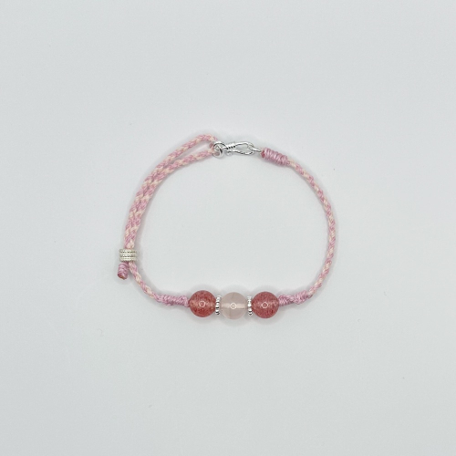 #草莓晶 + #粉晶 + #純銀花花隔珠
