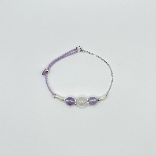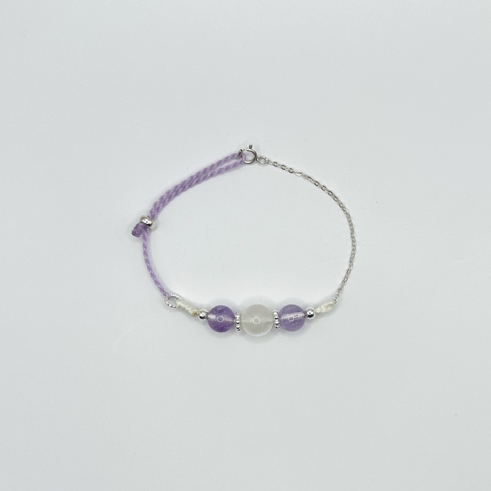 #純銀練 + #純銀小麻花圈 + #純銀花花隔珠 + #薰衣草紫晶 + #斯里蘭卡藍月光 + 素面銀珠