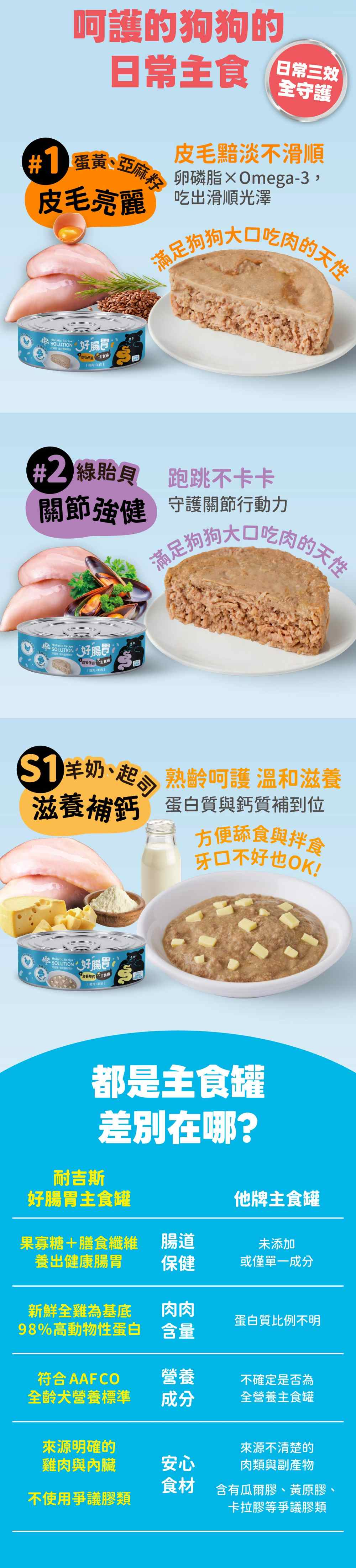 【6入賣場】耐吉斯 好腸胃主食罐 狗主食罐 80g 狗罐頭 無穀 腸道保健 98%高蛋白 益生菌添加 solution