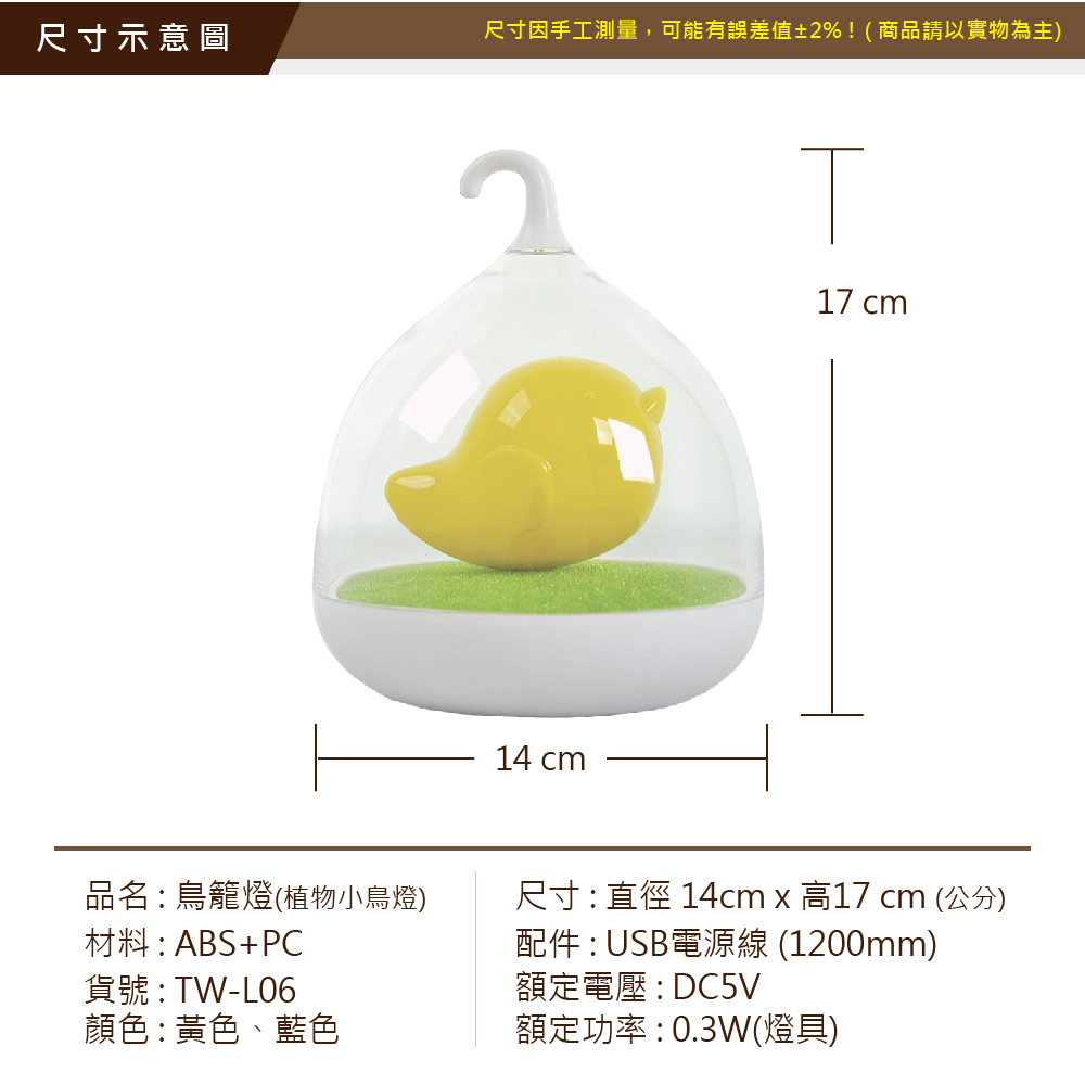 鳥籠尺寸: 17 x 14cm ±2%