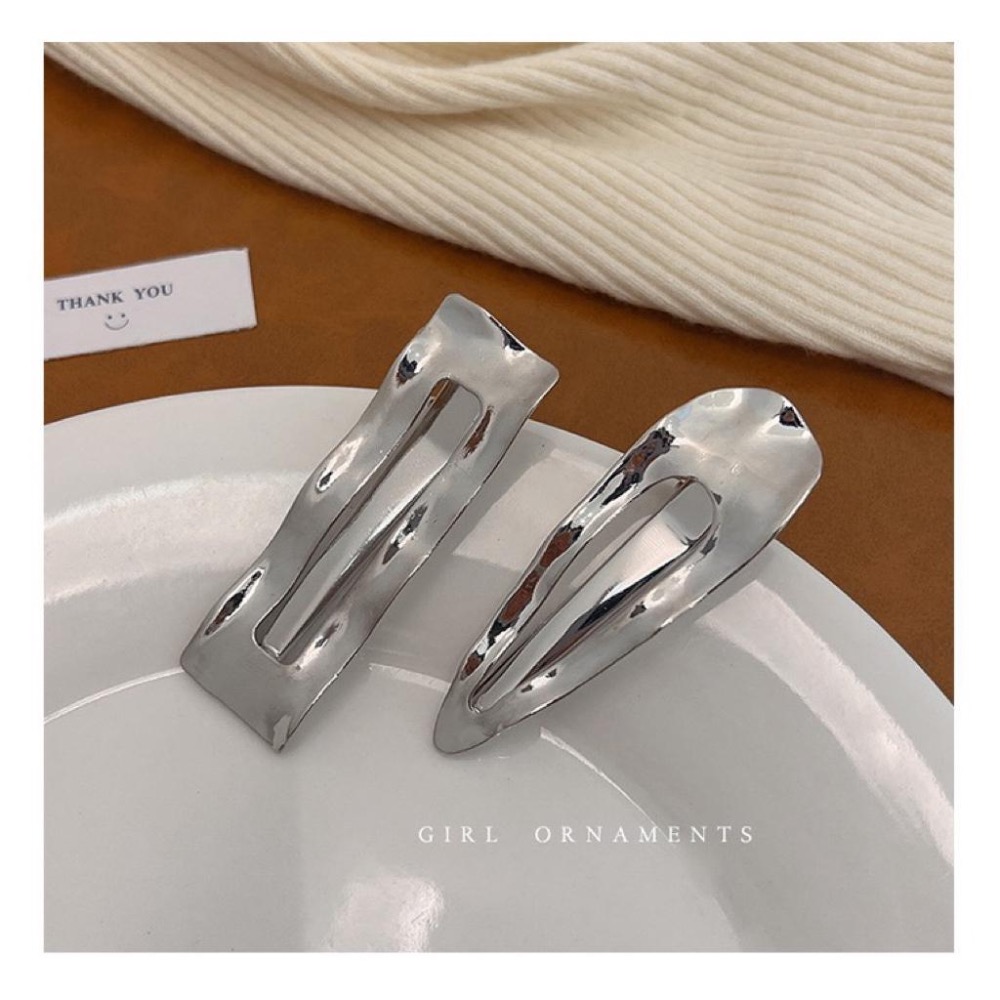 【老闆的娘】高雄現貨 隔日出 不規則幾何金屬鴨嘴夾 歐美個性女瀏海夾 高質感合金橢圓髮夾 水滴夾 碎髮夾髮飾