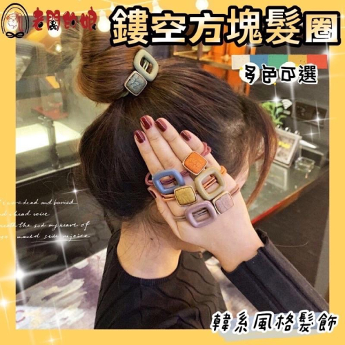 [老闆的娘] 台灣現貨 韓版氣質簡約小香 莫蘭迪色鏤空方塊高彈力髮圈 扎馬尾 髮繩 包頭橡皮圈 髮繩 造型髮束 髮飾