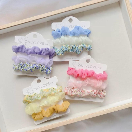 【老闆的娘】高雄現貨 隔日出 法式甜美小碎花雪紡褶皺大腸圈三件組 韓版簡約夏日百搭髮圈 包頭造型圈 綁馬尾 髮飾