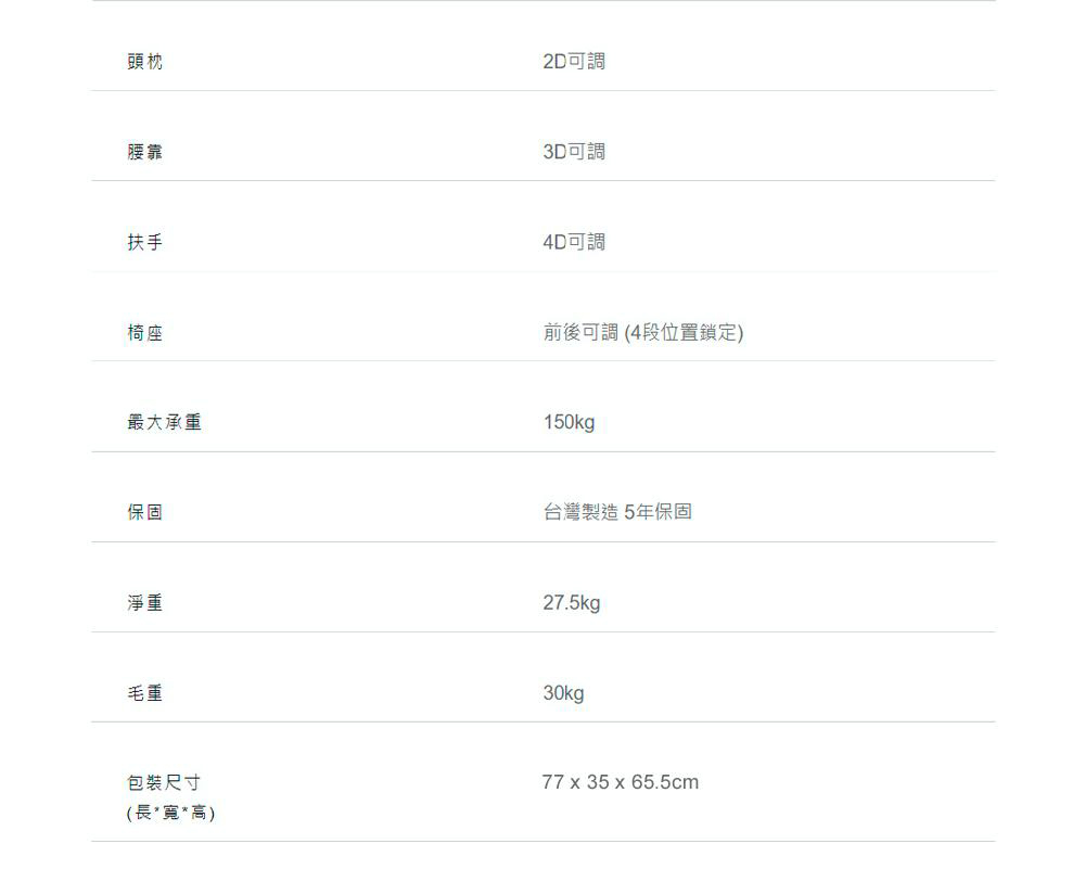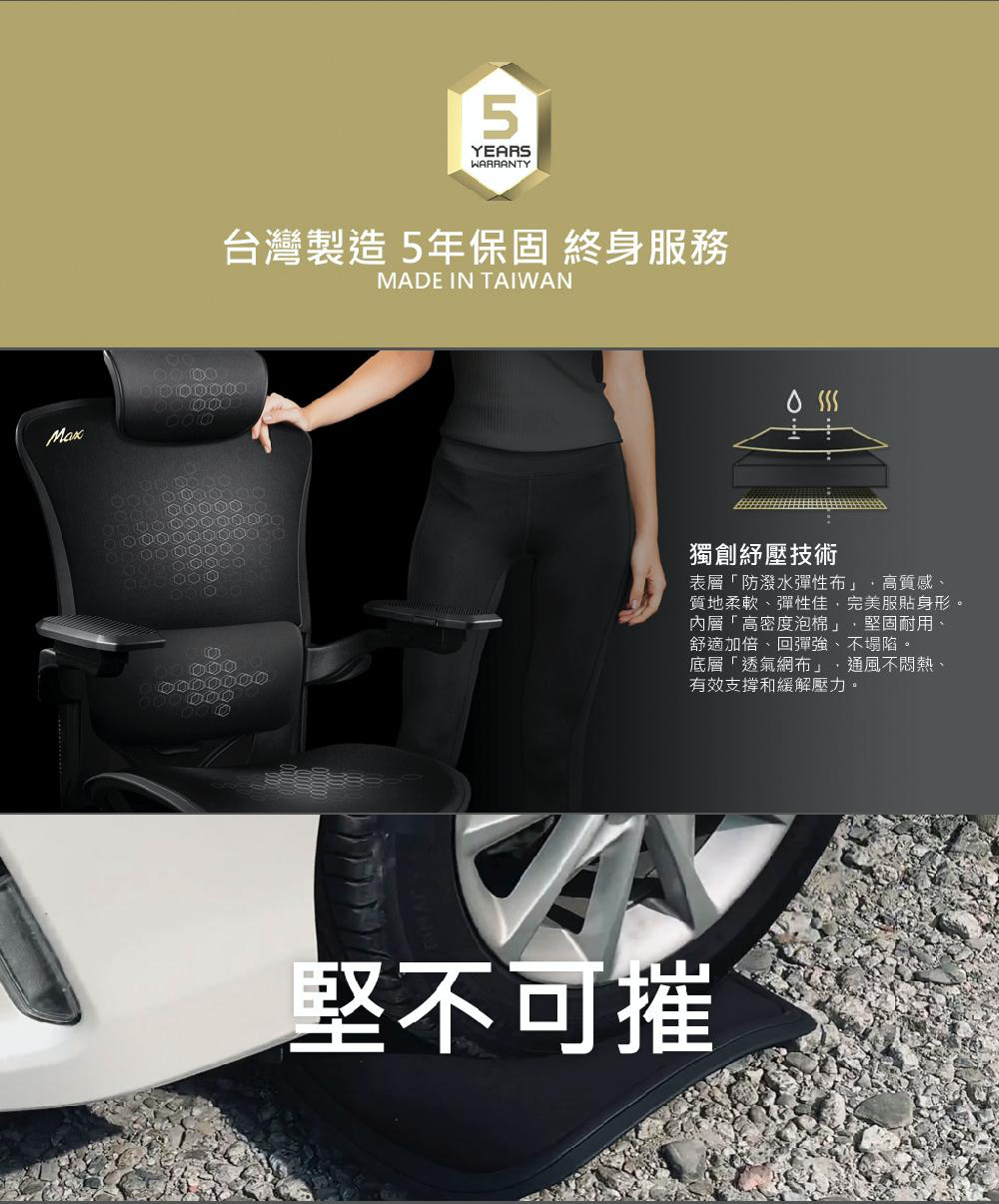● 安全4級氣壓棒(德國TÜV、美國BIFMA認證)