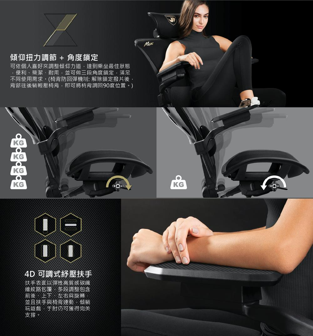 ● 椅背傾仰系統(扭力調節+角度鎖定)