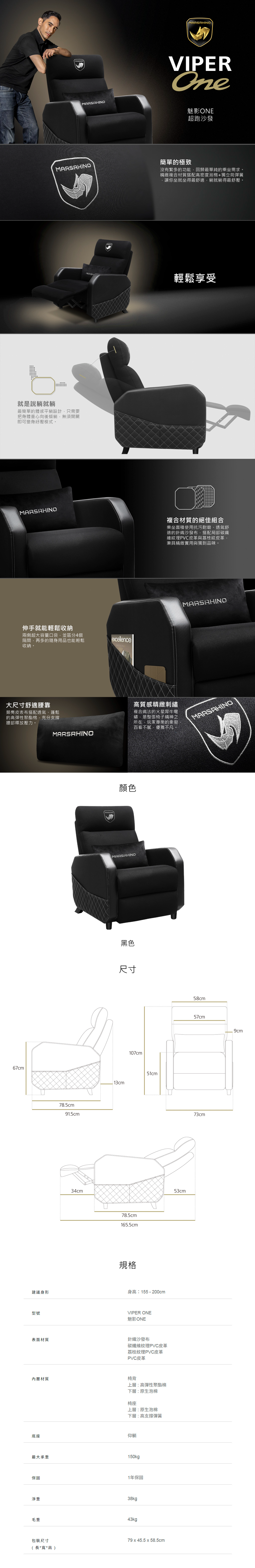 官方直營【MARSRHINO 火星犀牛】VIPER ONE 魅影ONE 無重力懸浮紓壓 超跑沙發 電競沙發 單人沙發