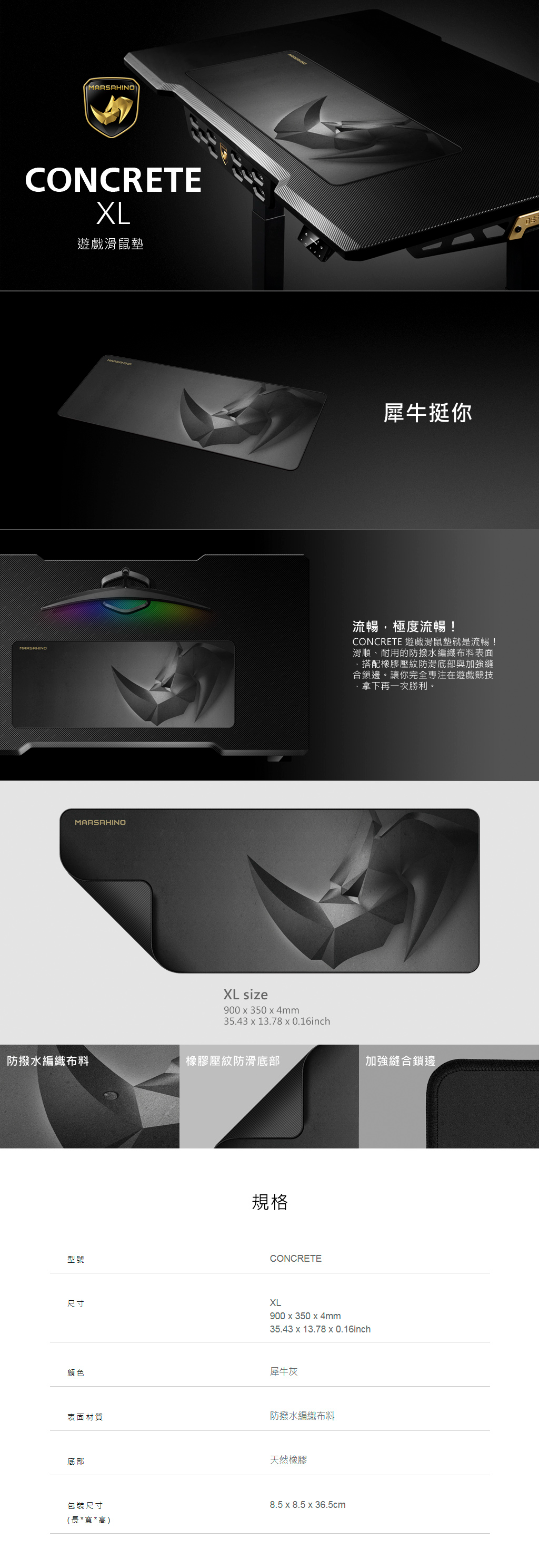 官方直營【MARSRHINO 火星犀牛】大型 遊戲滑鼠墊 極度流暢 防潑水 防滑橡膠 900x350x4mm