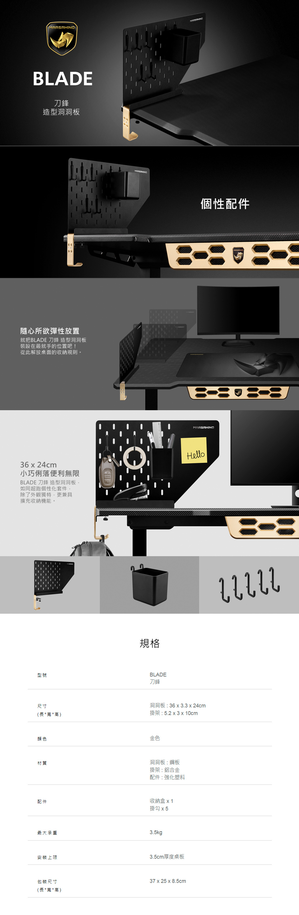 官方直營【MARSRHINO 火星犀牛】BLADE 刀鋒 鋁合金掛勾設計 造型金屬洞洞板(磁吸 耳機掛勾 洞洞板 配件)