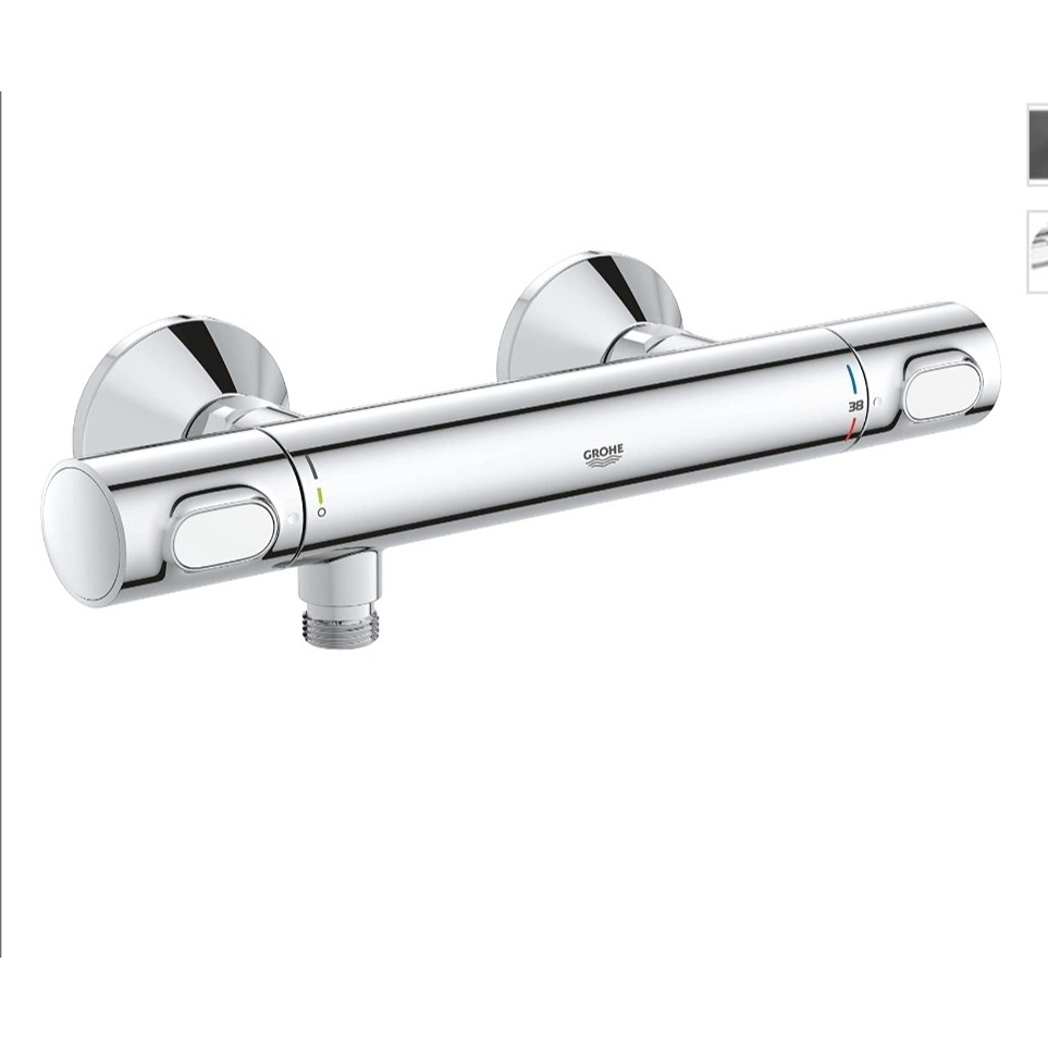 高儀精流恆溫淋浴龍頭(38 °C 安全鎖,帶 S 型連接件和金屬花環),鍍鉻,34840000 和說明書包含在供貨範圍內