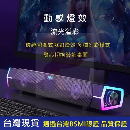 • 動態 RGB 燈效: 音響兩側及旋鈕處設有鮮豔的環狀燈光,能營造出強烈的電競氛圍,非常適合搭配遊戲主機或發光鍵盤使用。