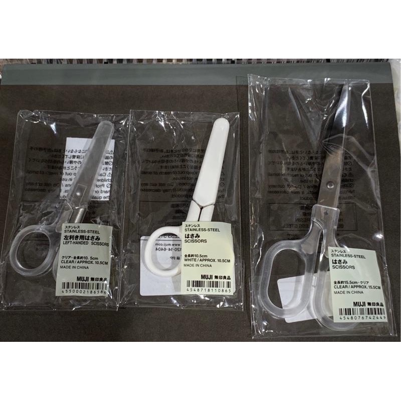 👍 極簡風 質感文具 MUJI 無印良品 剪刀、美工刀 系列商品 ◆ 不鏽鋼剪刀 透明 (圖一.右) 刀刃為不鏽鋼材質,外型簡約。全長約15.5cm ◆ 不鏽鋼剪刀(附蓋) 白 (圖一.中) 使用不鏽鋼材質製成,體積小適合攜帶 且有安全的附蓋設計。全長約10.5cm ◆ 不鏽鋼剪刀(左手用)/透明.全長約10.5cm (圖一.左) 左撇子專用附蓋剪刀,體積精巧、攜帶方便。 且有安全的附蓋設計。全長約10.5cm 規格:透明.全長約10.5cm 材質:把手部位:ABS樹脂蓋子:ABS樹脂刀刃:不銹鋼刀刃 ◆ 輕鬆施力剪刀/全長約15.5cm (圖二.右) 刀刃為圓弧設計,只要輕鬆施力即可剪裁。 尺寸/大小:全長約15.5cm 規格:全長約15.5cm 材質:刀刃:不銹鋼刀刃氟素樹脂、柄:ABS樹脂 ◆ 左右手兩用刀片/13cm (圖四.左) 改變刀片的方向,左撇子也方便使用的美工刀。可替換美工刀片。 ◆ 不鏽鋼刀片/迷你 (圖四.右) 輕巧且攜帶方便的不鏽鋼製刀片。 • 商品均購自 MUJI 無印良品 台灣門市 • 頁面圖片均為實品拍攝。 • 代買價格內含商品台灣門市訂價與代買服務費用。 #無印良品 #muji #代買 #代購 #無印 #剪刀 #文具 #刀片 #筆 #尺 #鉛筆盒 #學生 #美勞 #美術 #辦公
