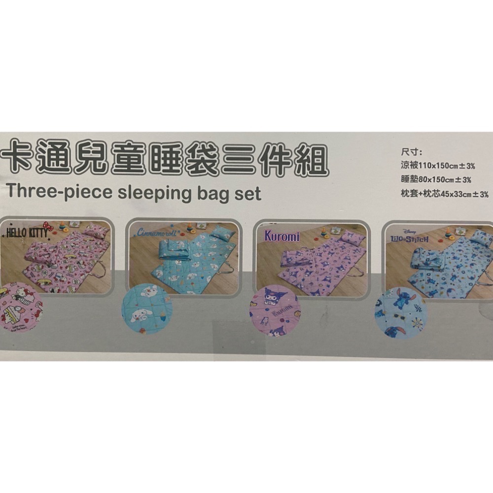 #卡通兒童睡袋三件組 #酷洛米 #凱蒂貓 #大耳狗 #史迪奇