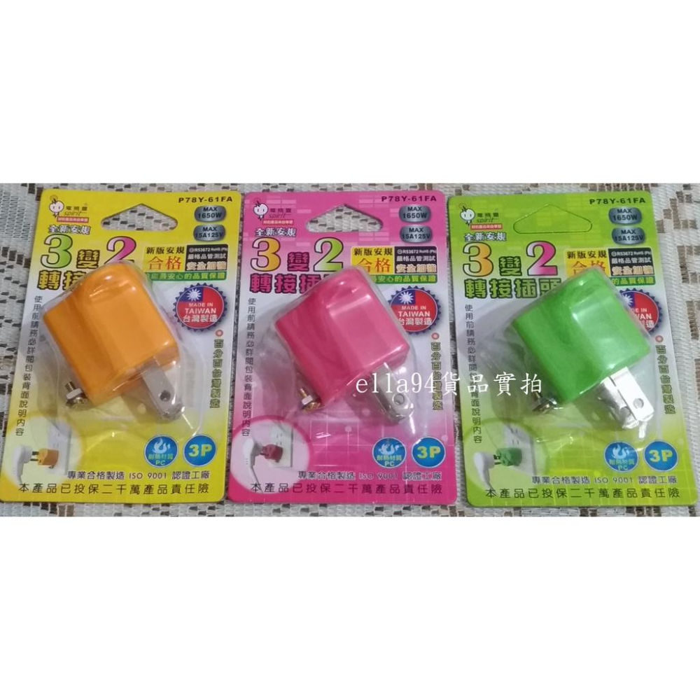 志志賣場-電精靈 3轉2轉換插頭 轉接插頭 3轉2插頭 插頭 (不挑色隨機) 台灣製