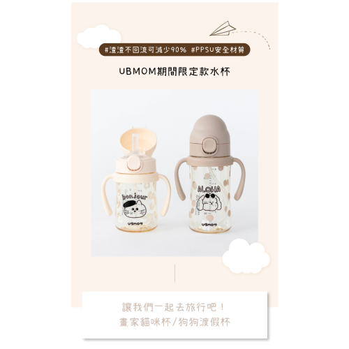 畫家貓咪、狗狗渡假風食物渣渣防回流水杯