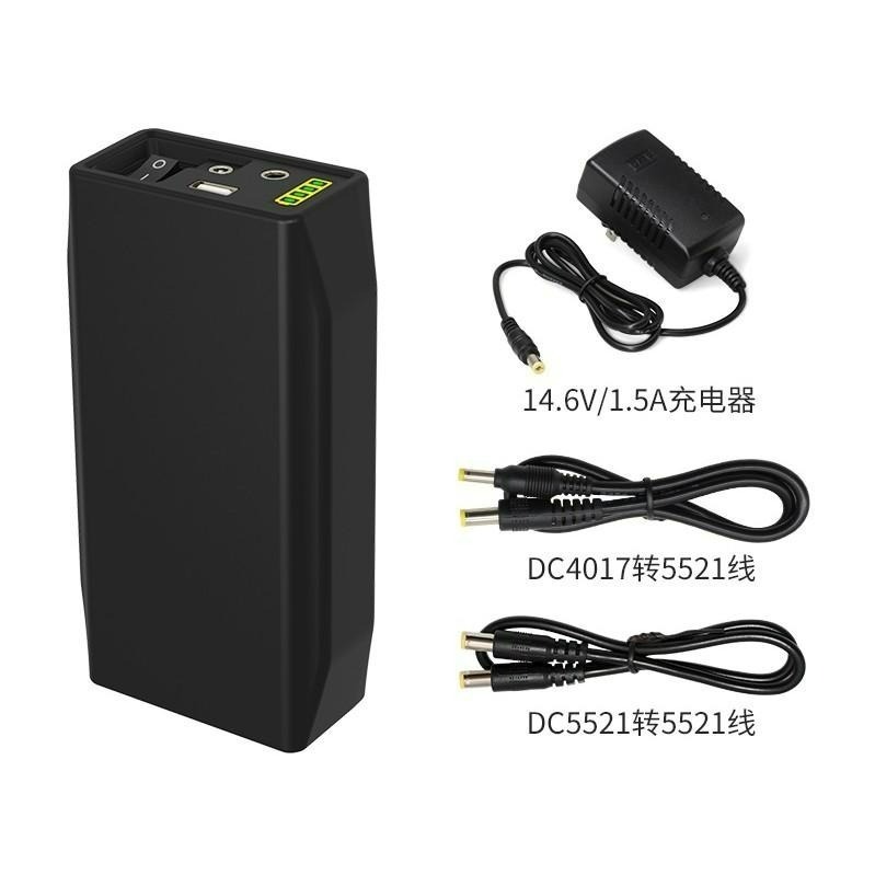 1️⃣全套含12V 6.4A鋰鐵電池+14.6V 1.5A充電器(標配)+DC5521轉DC5521線(12V用)+DC4017轉DC5521線(9V用)