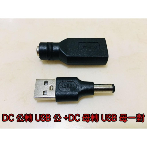 一、DC 5.5x2.1mm公接頭轉USB A公接頭