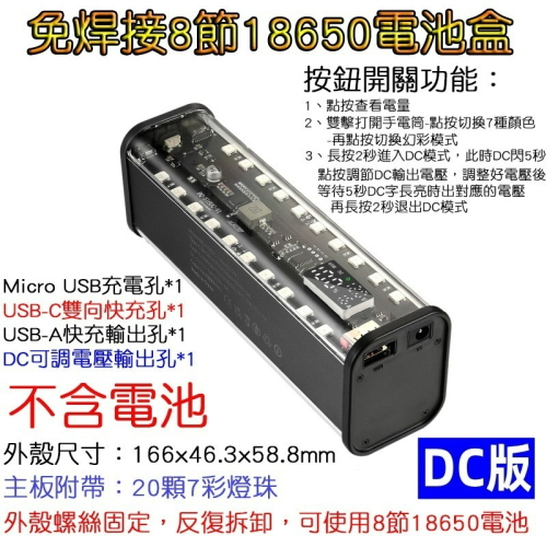 1️⃣、裝單顆18650電池即可使用,也可裝2~8顆。