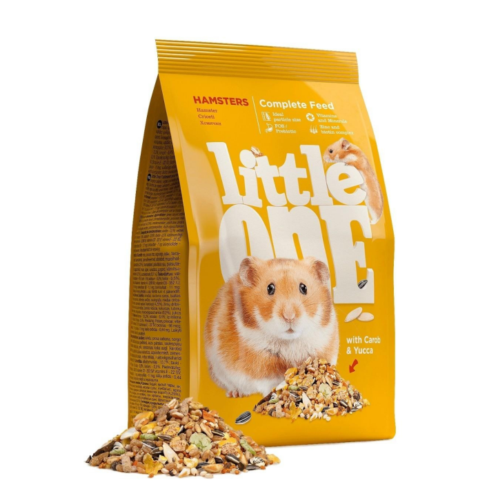 小麥、紅穀子、白高粱、大麥、多穀製成的乾糧、去皮燕麥、向日葵籽、大麥片、玉米片、蕎麥、角豆(4.25%)、碗豆片、爆小麥、爆玉米、爆大麥、花生、玉米、魯冰花片、乾胡蘿蔔、南瓜子、果寡糖(0.2%)、絲蘭提取物(0.01%)