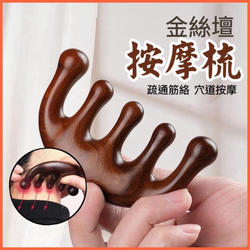 【滿額免運】檀木按摩梳 按摩梳 按摩器 穴道按摩梳 經絡按摩 金絲壇 頭皮按摩 頭皮原木梳 天然檀木 木梳 刮痧