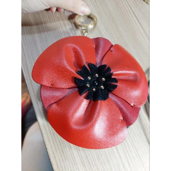 Kate spade ♠️ 化粧包/零錢包/小型圓包 大紅花瓣綴飾/拉鏈層/黑底 多功能用途鑰匙圈包包