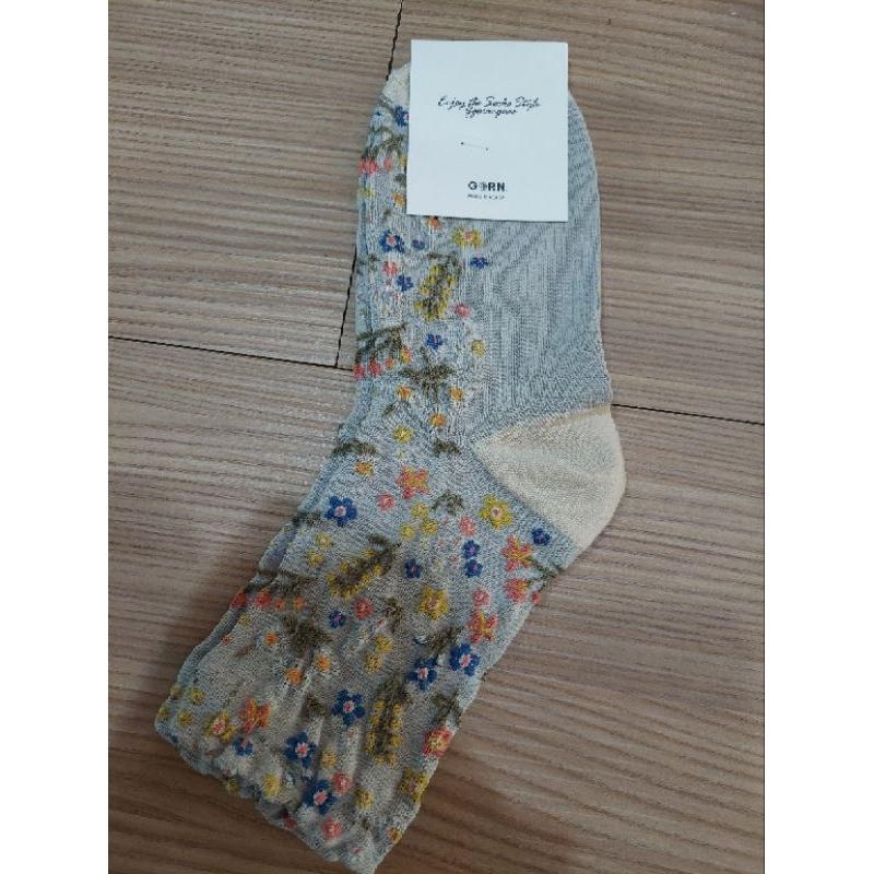 韓國製襪子灰色雕花立體繽紛碎花中筒襪可愛 百搭 中筒 花朵 文青 純棉襪