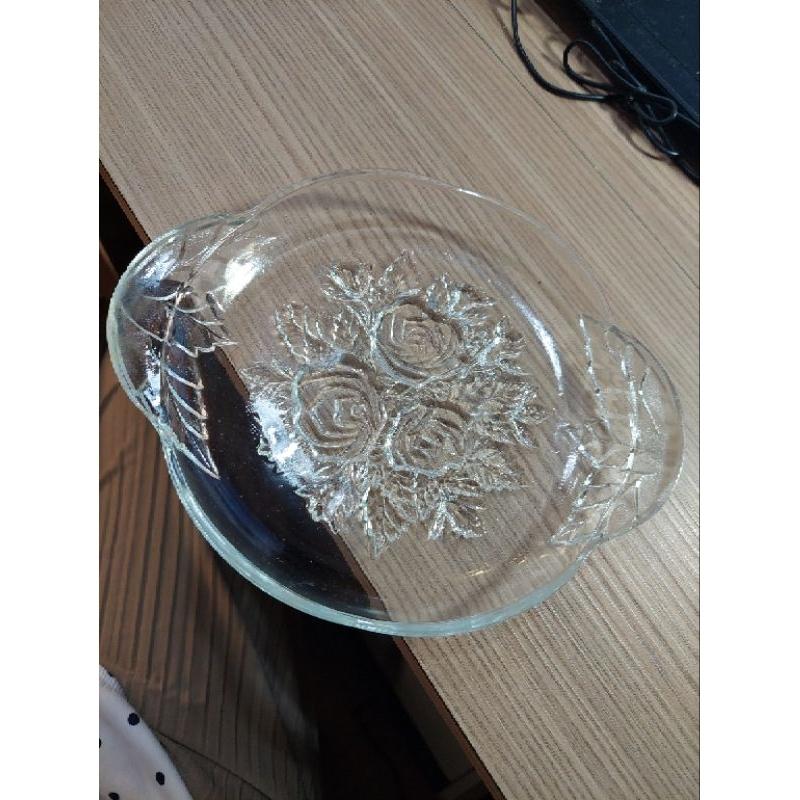 早期古典玻璃雕花玻璃盤水晶玻璃甜點盤 21*17*3cm 玫瑰花盤