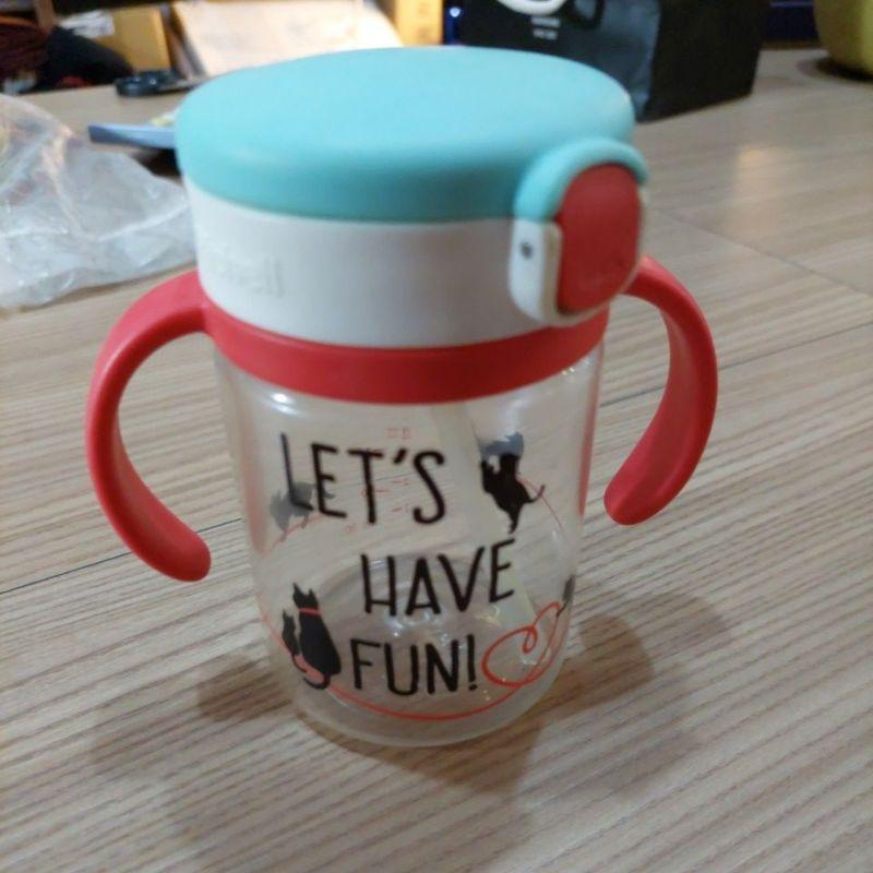 日本 RICRELL吸管(直飲)小貓咪學習把手冷水杯200ml