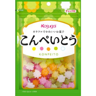 品名:金平糖      70677 白色:砂糖 黃色:砂糖、食用色素(紅花黃) 綠色:砂糖、食用色素(紅花黃、藍梔子) 橙色:砂糖、食用色素(婀娜多、β-胡蘿蔔素) 紅色:砂糖、食用色素(紅甜菜) 內容量:76公克 有效日期:2027/12/31 製造商:春日井製菓株式會社 日本國愛知縣名古屋市西區花之木1-5-2 原產地:日本國愛知縣