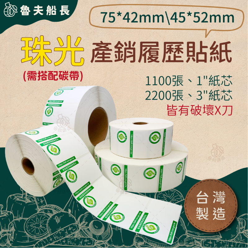 【珠光霧面】產銷履歷貼紙75*42mm,45*52mm 產銷履歷認證/農產品標章貼紙/農產品貼紙 台灣製造