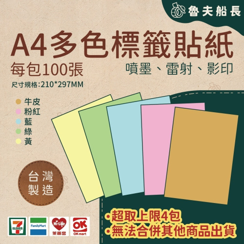 🎯A4多功能自黏貼紙(多色) ,100張/包