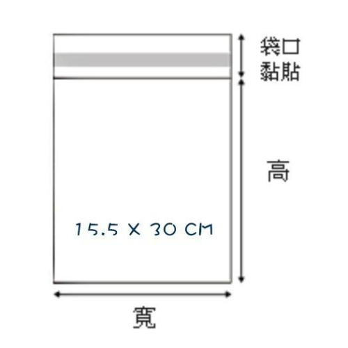 <4-0155-30> ★規格 :15.5*30cm (可裝內容物的尺寸,不含自粘部份) ★厚度 :0.03mm ★包裝 :包/100入+-2% ★單位 :包 ★用途 :包裝、收納、美化 ★MIT 透亮新晰 ★可直接碰觸食品★