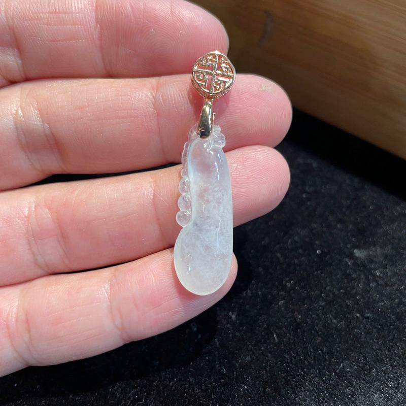 瀚玉珠寶.天然A貨緬甸玉.玻璃種冰福瓜翡翠墜..925純銀墜頭.送禮收藏兩相宜|緬甸玉