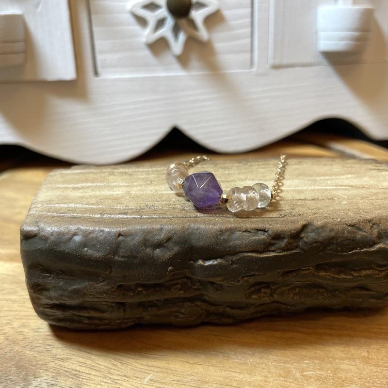 「紫藤花開」紫水晶 白水晶,天然水晶玉石手鍊,美國14k注金手鍊,設計款|元元圓滾滾