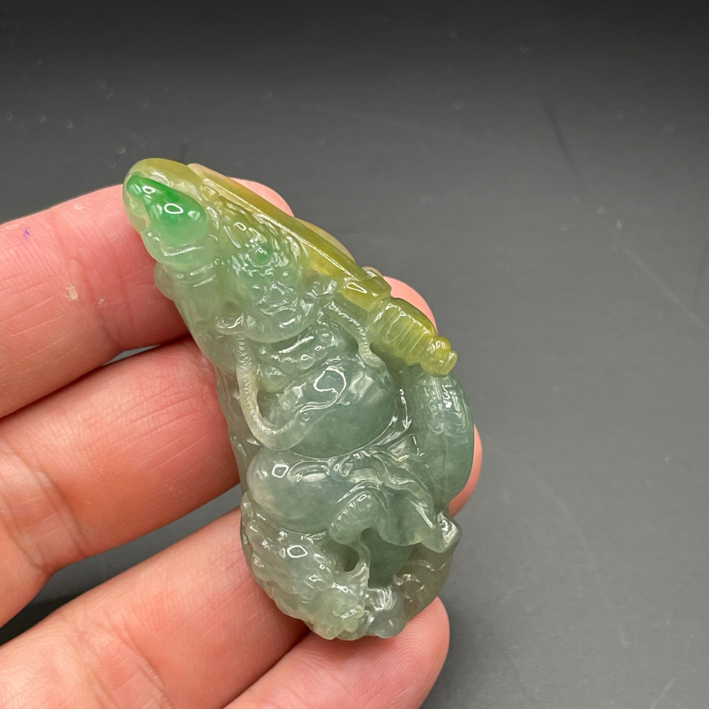 『瀚玉珠寶』老三彩翡翠.不動明王.蜜糖黃+正陽綠.緬甸玉.天然A貨翡翠