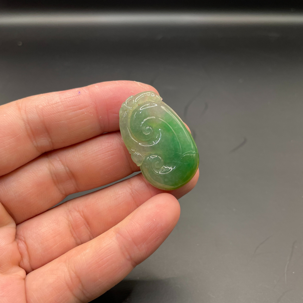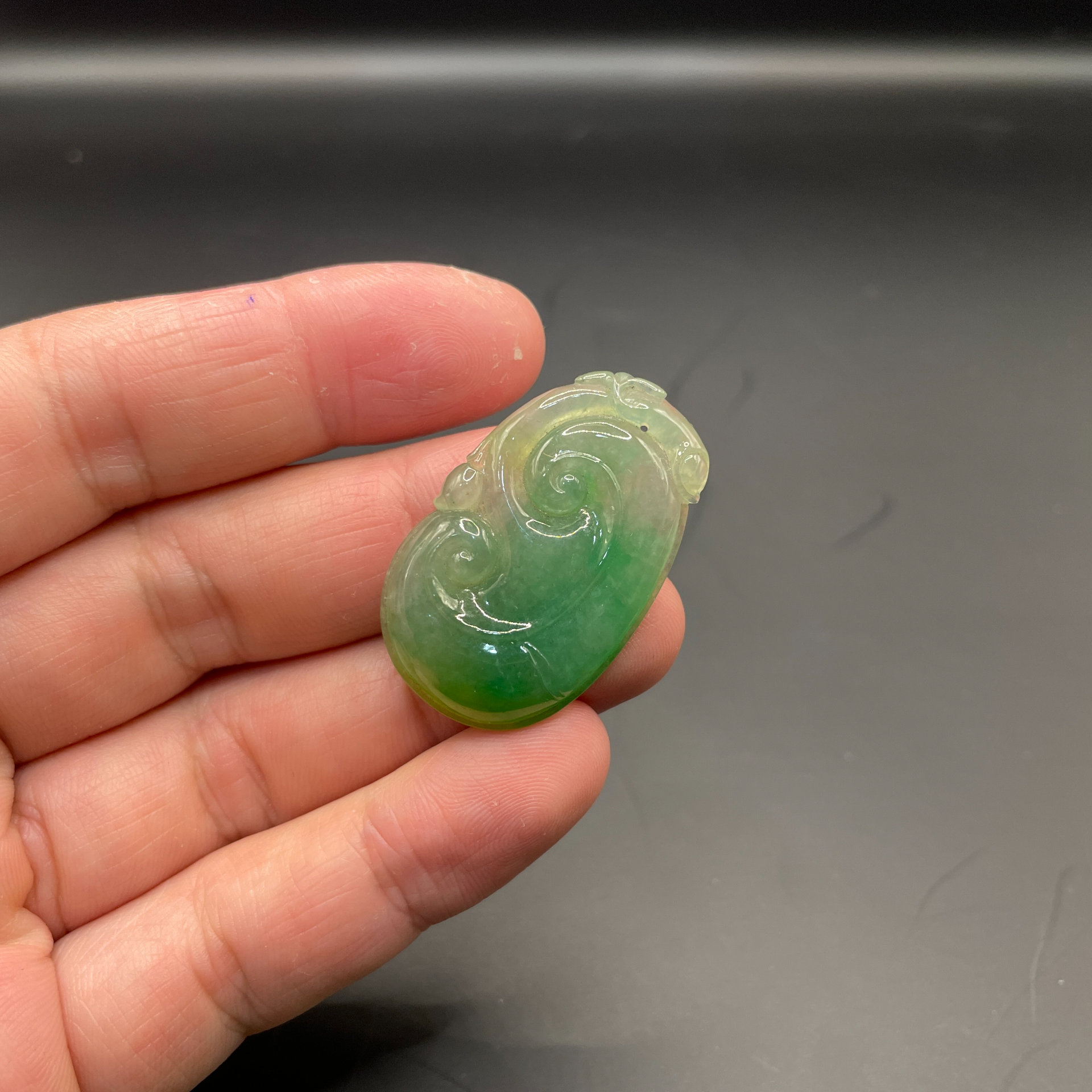 『瀚玉珠寶』冰種三彩如意翡翠墜.種水好顏色佳.黃加綠 老三彩值得珍藏.天然A貨翡翠如意墜